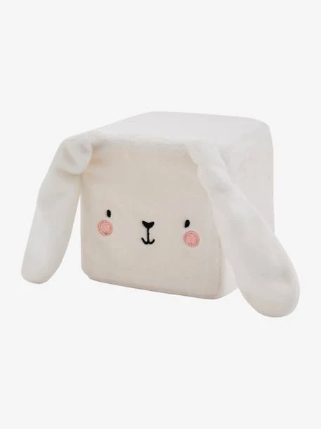 - 4 cubes de tailles différentes avec différentes textures : 1 renard : oreilles + couronne + queue en volume et visage brodé ; 1 cerf : oreilles + bois en volume et visage brodé ; 1 lapin : oreilles en volume et visage brodé ; 1 hibou : ailes en volume et visage brodé