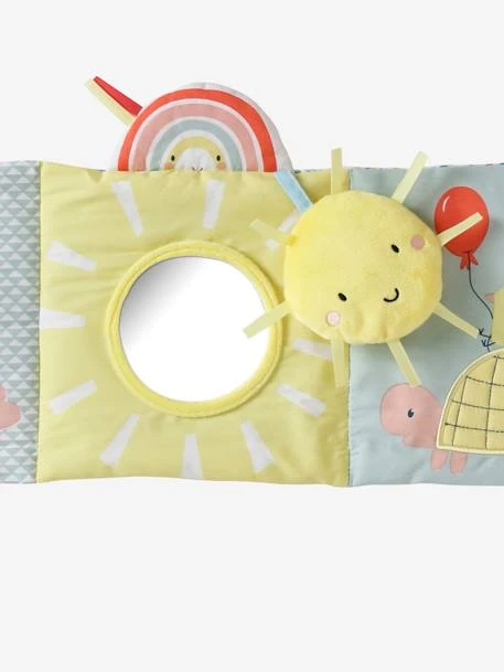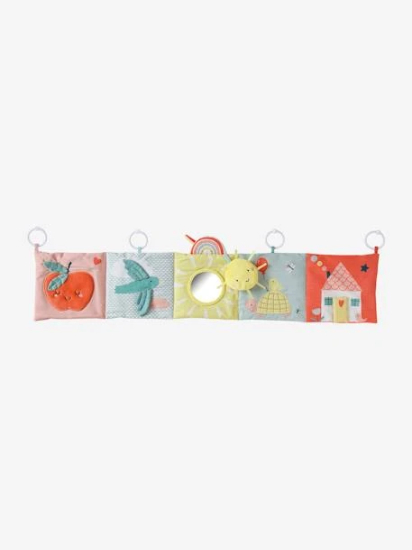 Un grand livre d’activités avec des anneaux pour l’accrocher sur le lit ou sur le parc. Papier crissant, éléments en volume, clochette, miroir, pouet-pouet… ses nombreuses surprises éveilleront les sens de bébé qui passera des heures à s’émerveiller devant ce joli jouet !