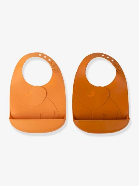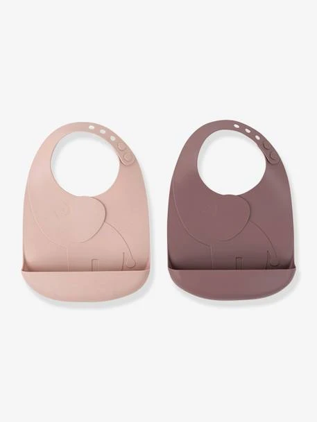 Lot de 2 bavoirs avec récupérateur DONE BY DEER Peekaboo Elphee en silicone